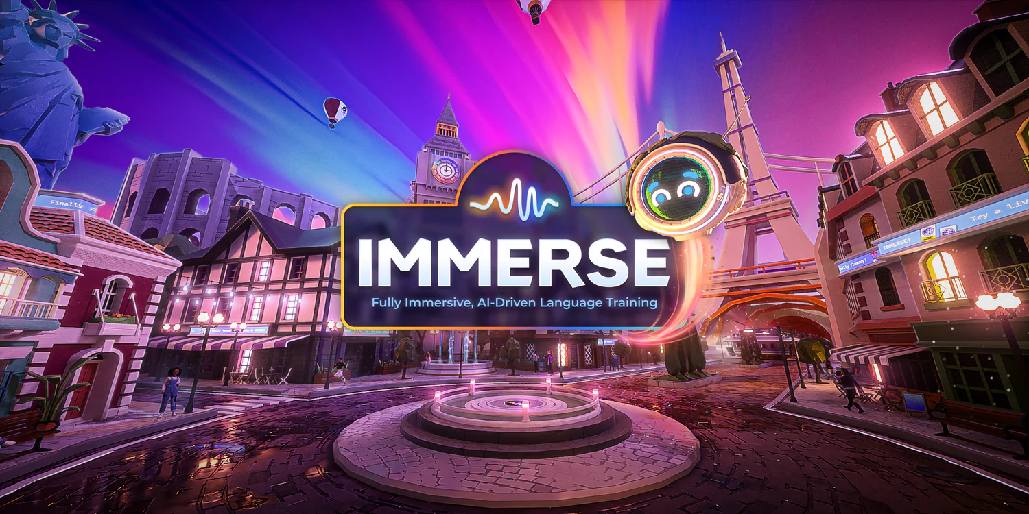 Practice real English conversations in immersive virtual reality - with live instructors and AI support.
